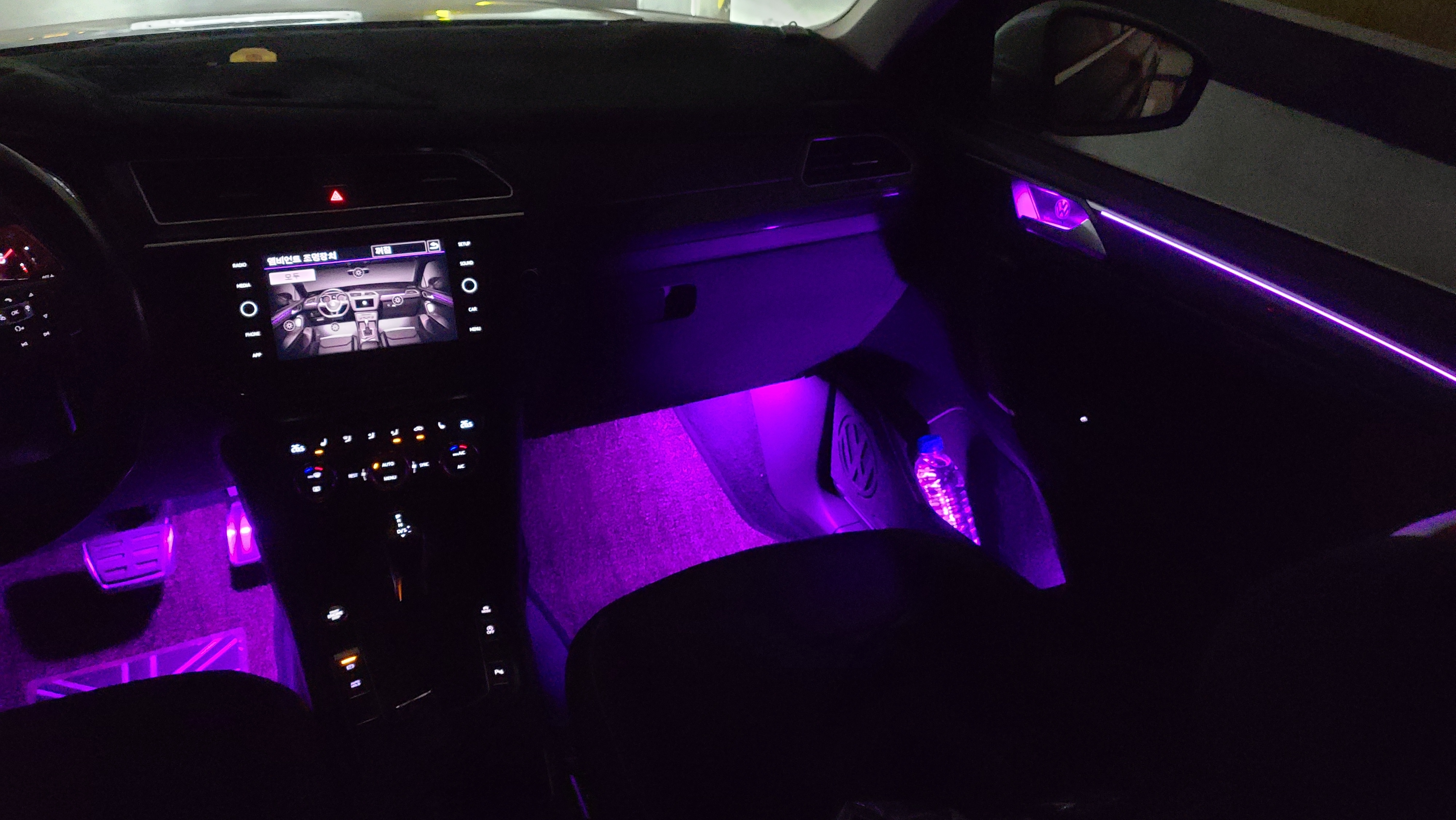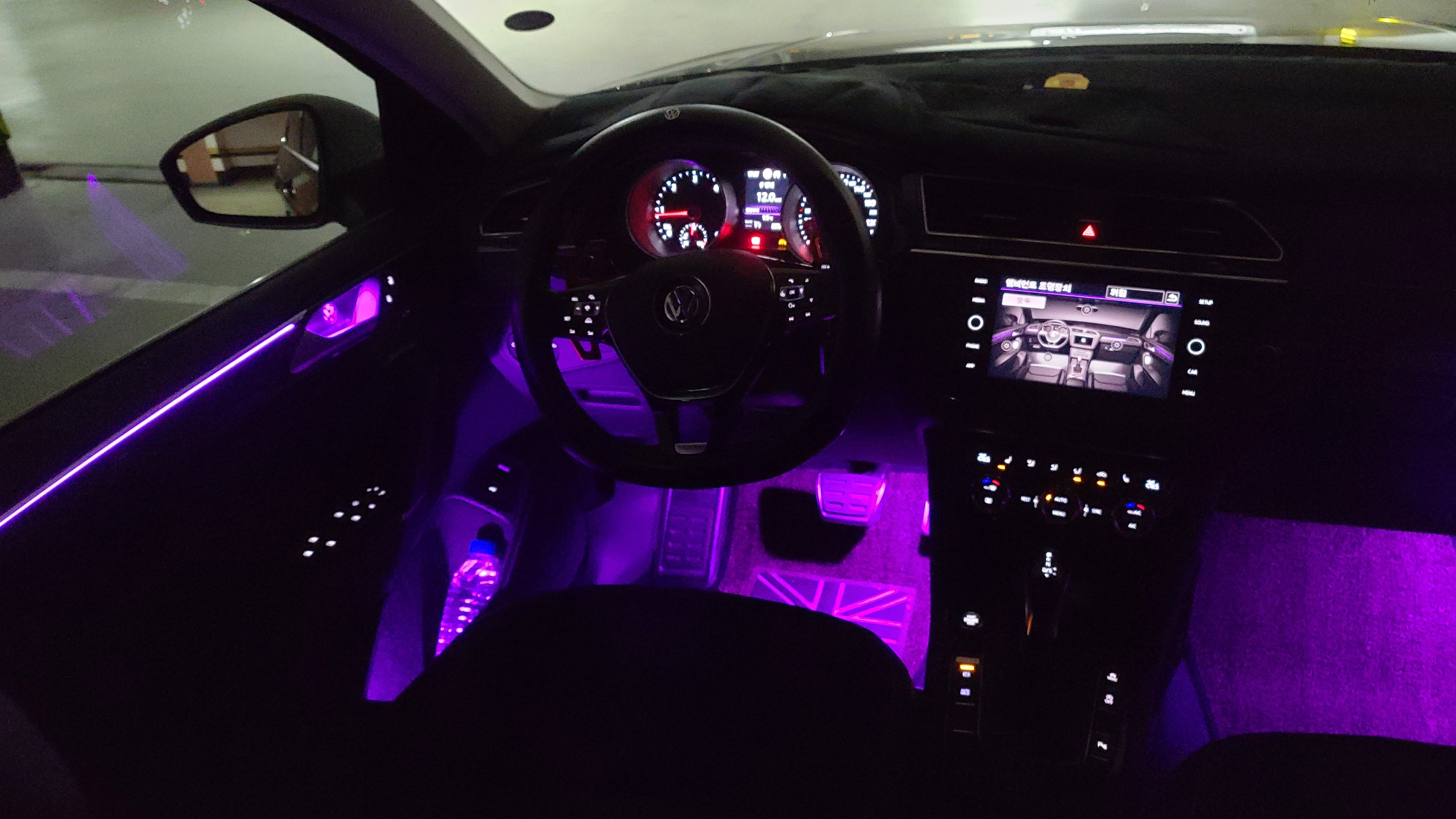 하지만 최근 폭스바겐 차량들이 많이 찾는 발밑공간 까지 3웨이 LED 를 적용해서 컬러를 변경할수 있도록 해줍니다